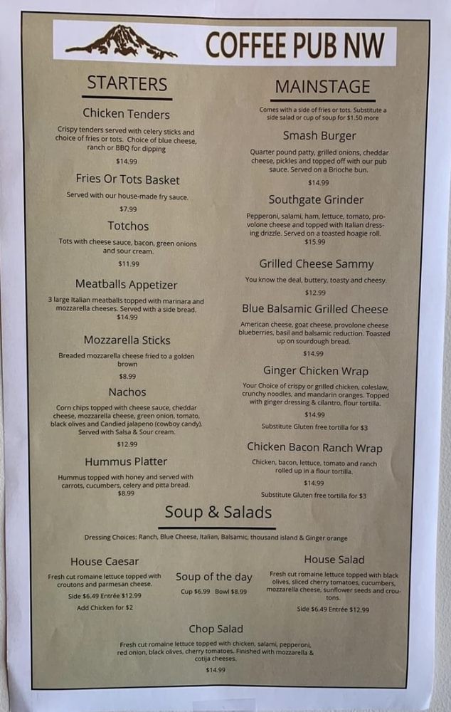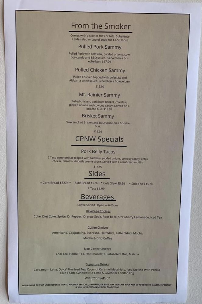 Coffee Pub NW Menu (Update 2025)